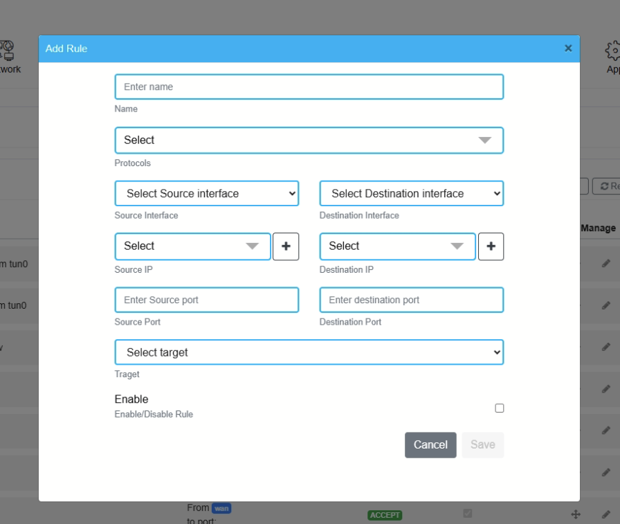 This section allows you to add custom Firewall Rules and Set Priority.