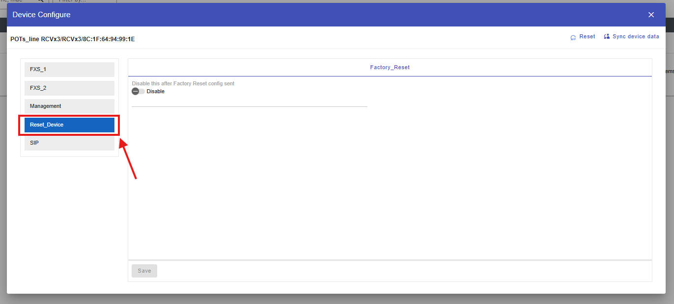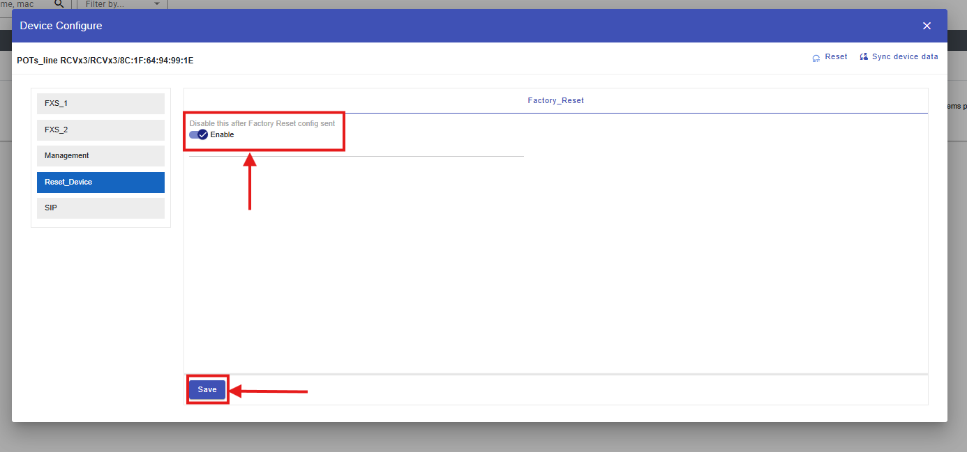 4. After selecting Factory Reset, you will see a Factory Reset Enable/Disable toggle. Please enable this toggle and then click Save, as shown in the image below.