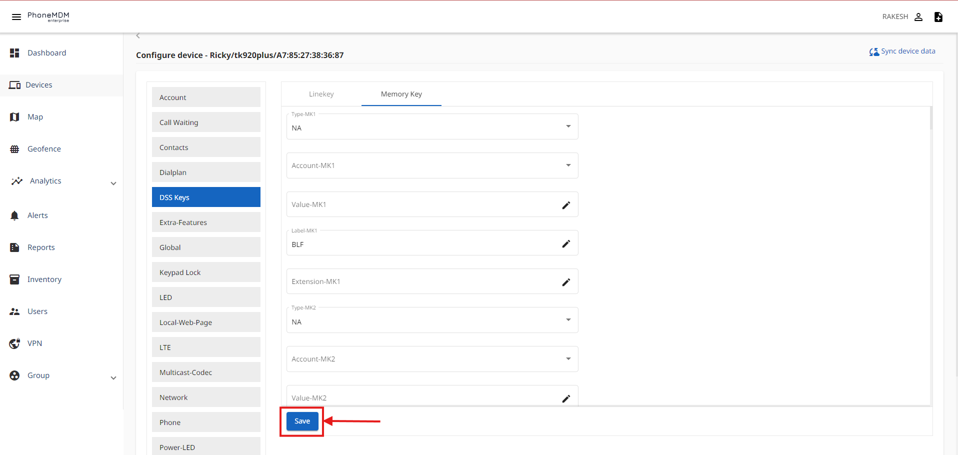 6. After configuring the line keys, click on the Save button to apply the changes.